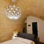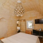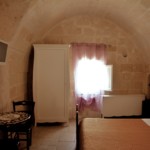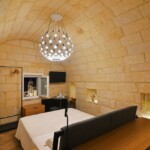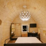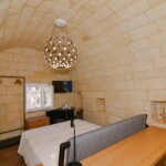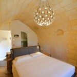 La camera è ricavata all’interno di uno sperone di roccia calcarenitica tipica di Matera.